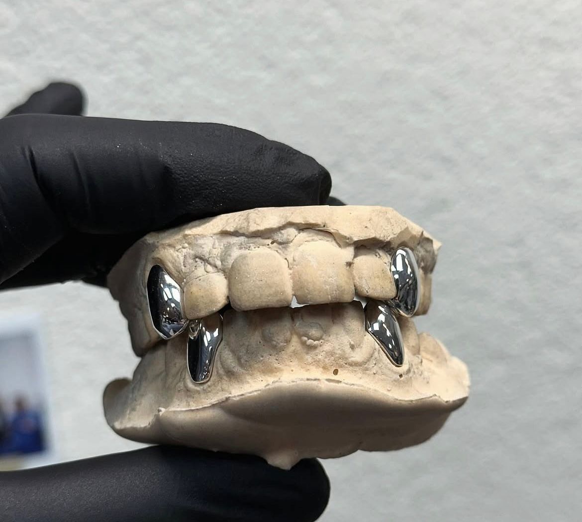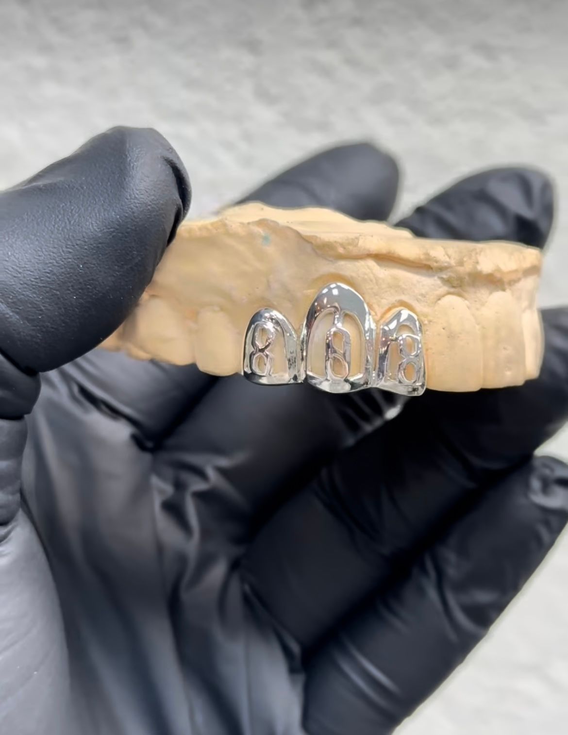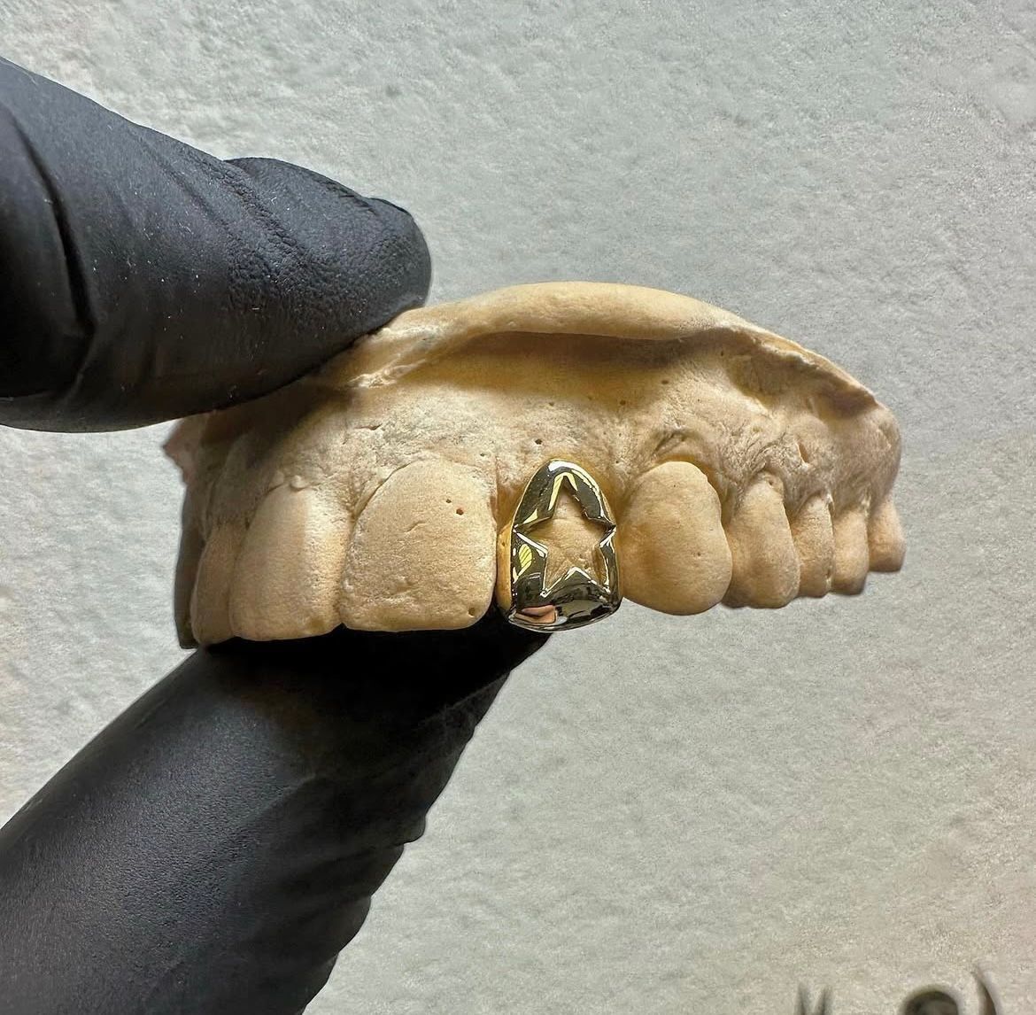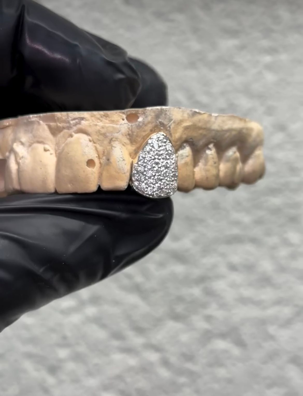 Grillz zijn aan eensluitende tanden, dus bijvoorbeeld 2 tanden naast elkaar die verbonden zijn of een top 12-piece.