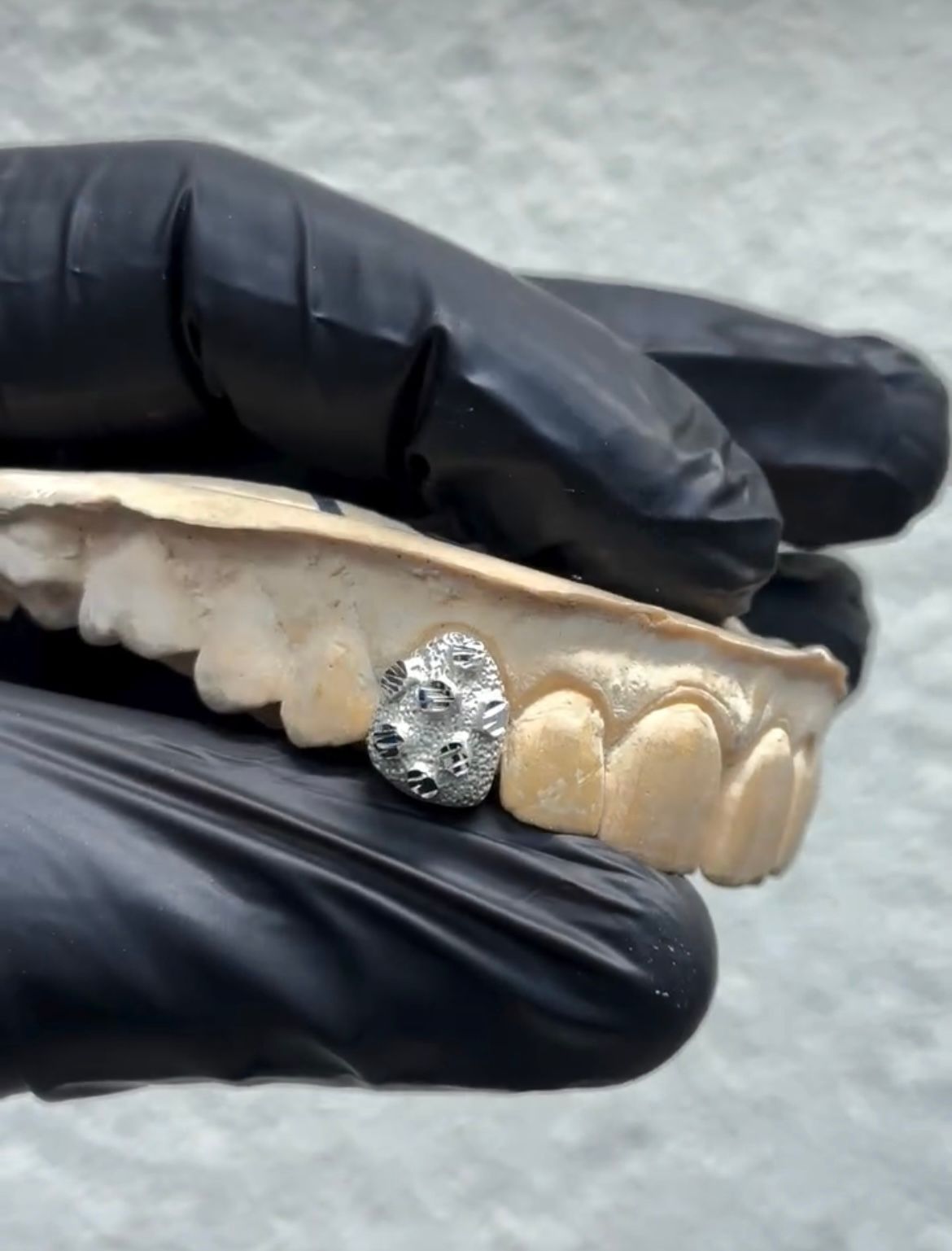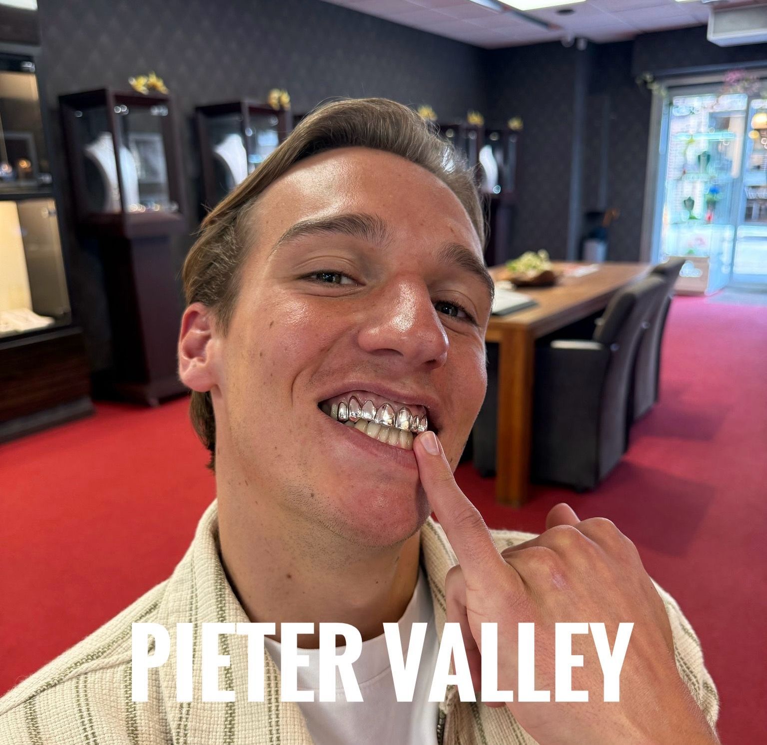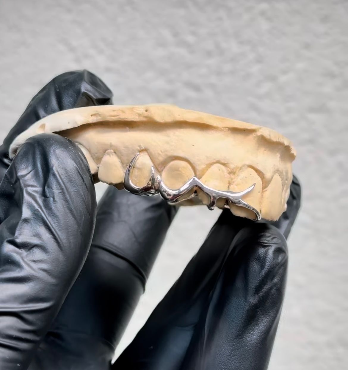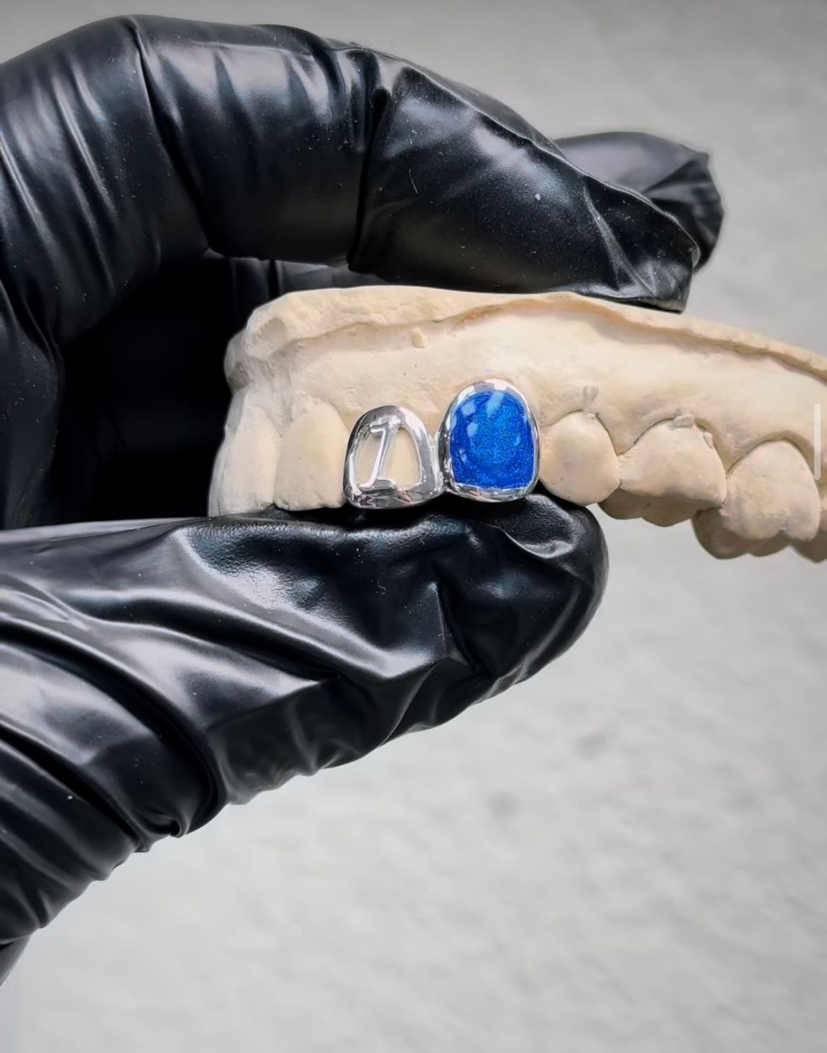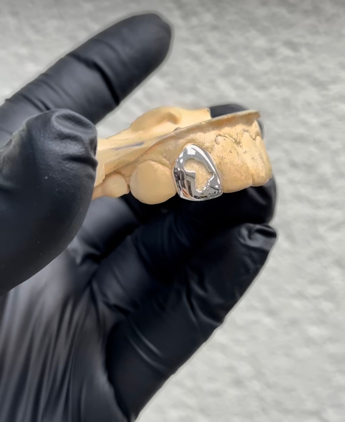 Grillz zijn aan eensluitende tanden, dus bijvoorbeeld 2 tanden naast elkaar die verbonden zijn of een top 12-piece.