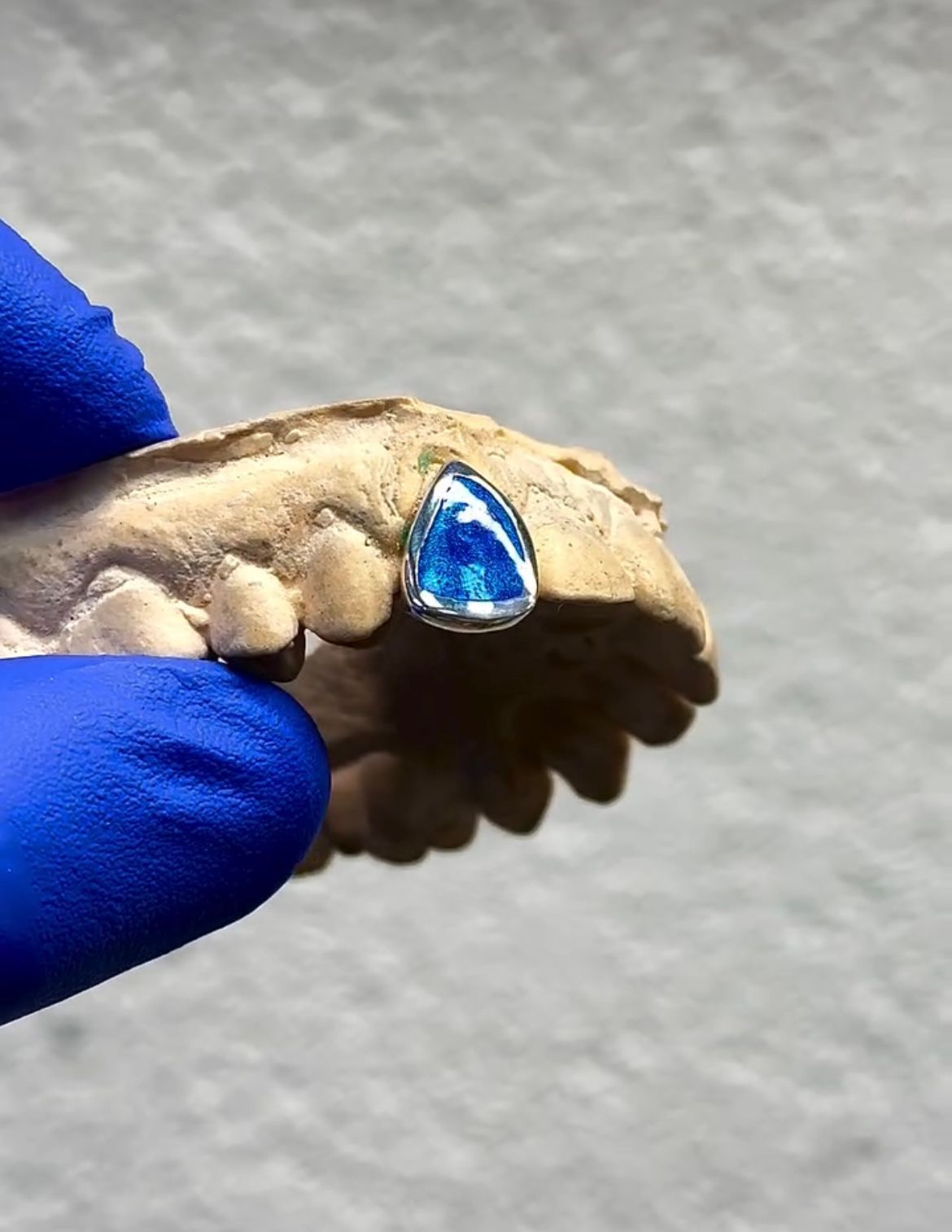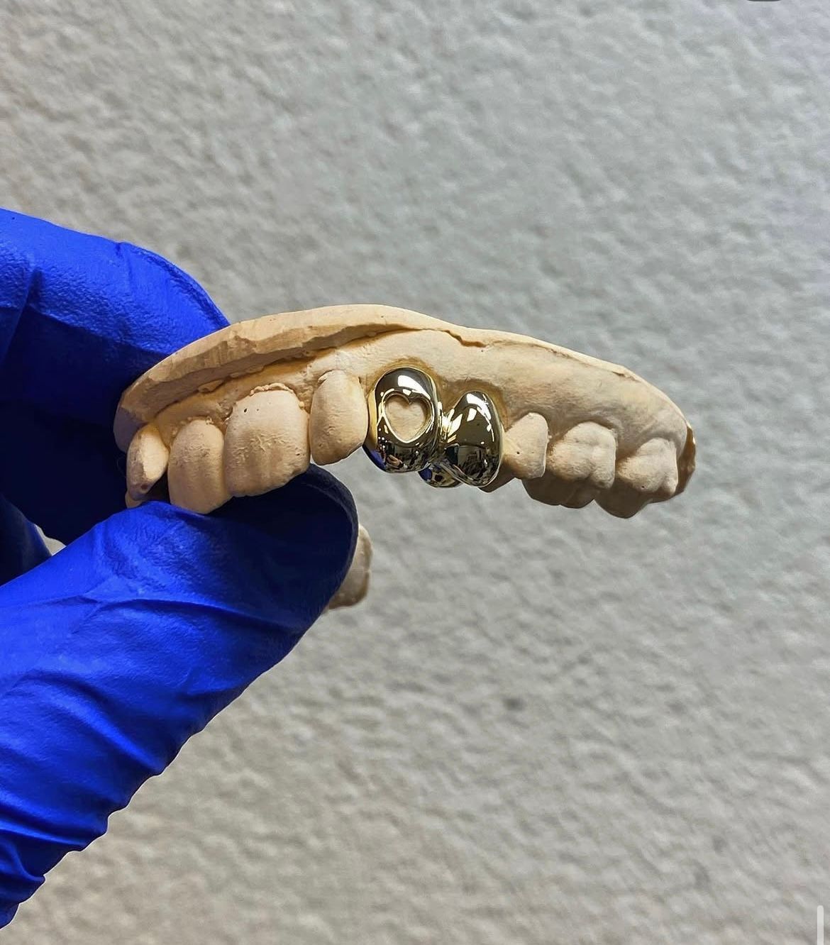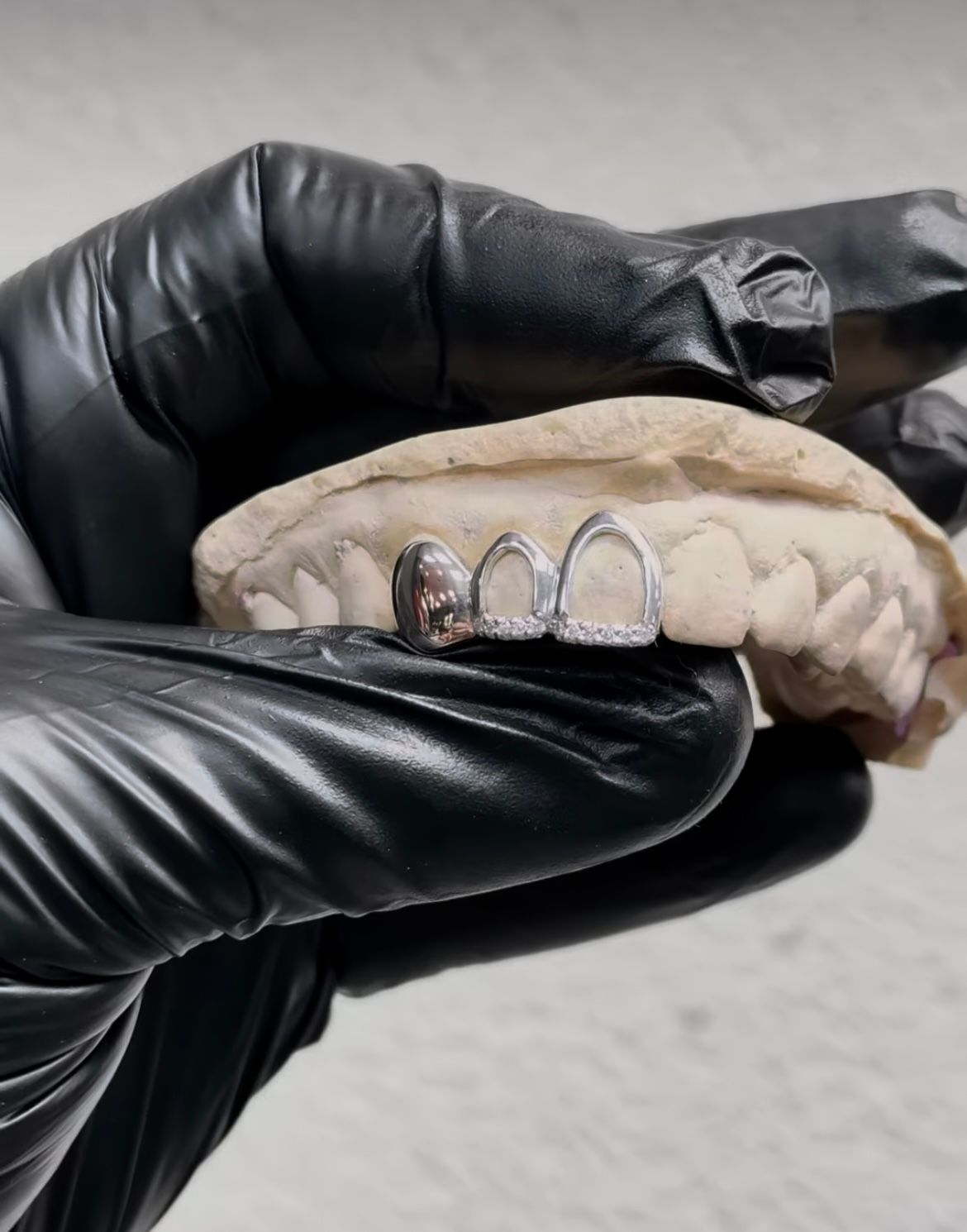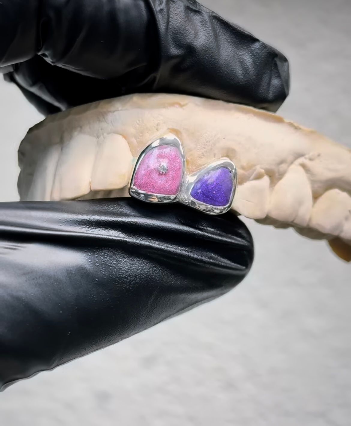 Grillz zijn aan eensluitende tanden, dus bijvoorbeeld 2 tanden naast elkaar die verbonden zijn of een top 12-piece.