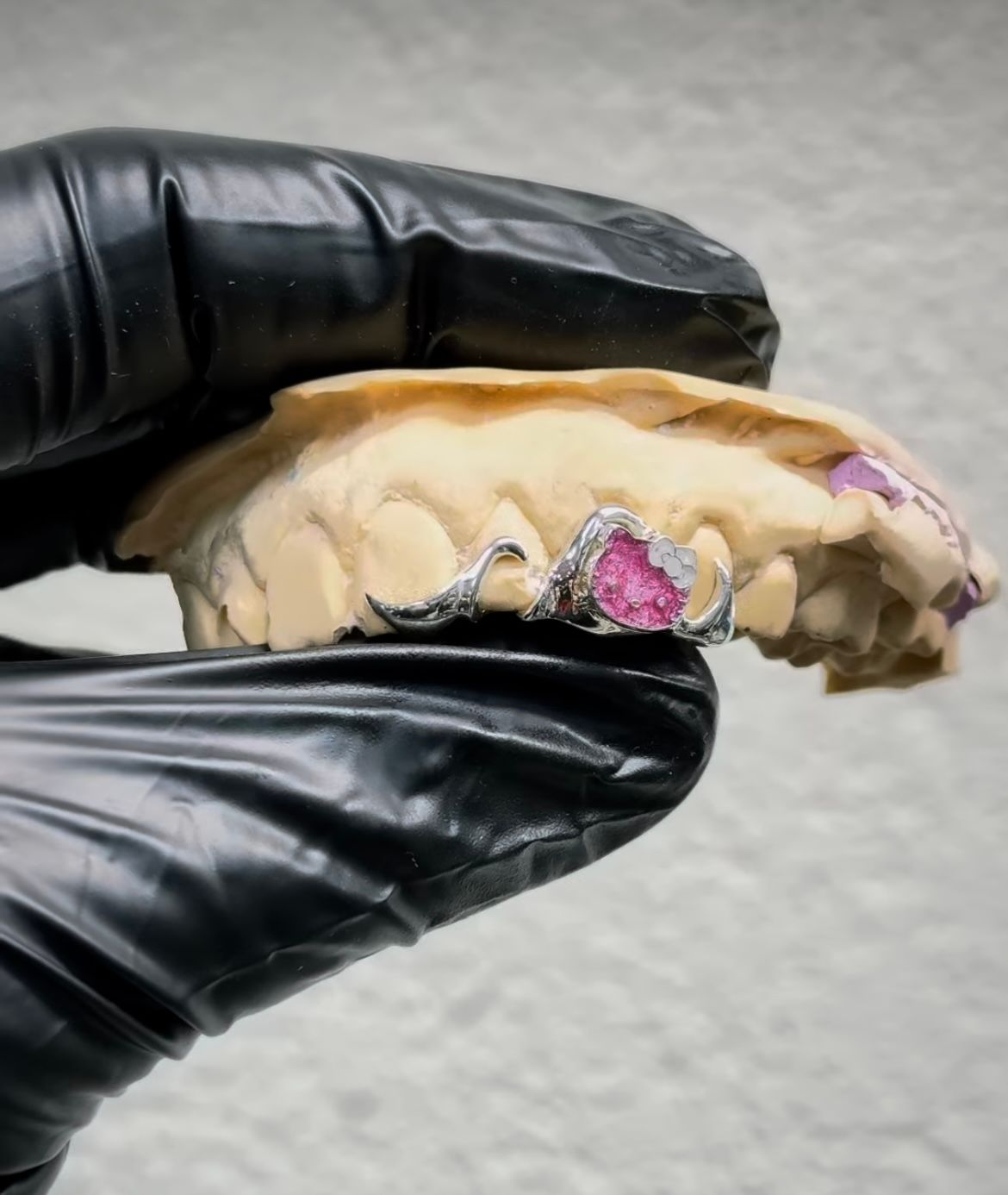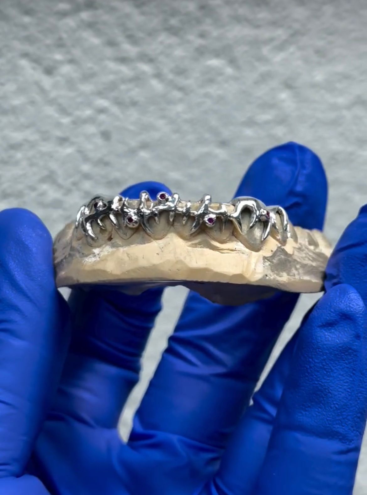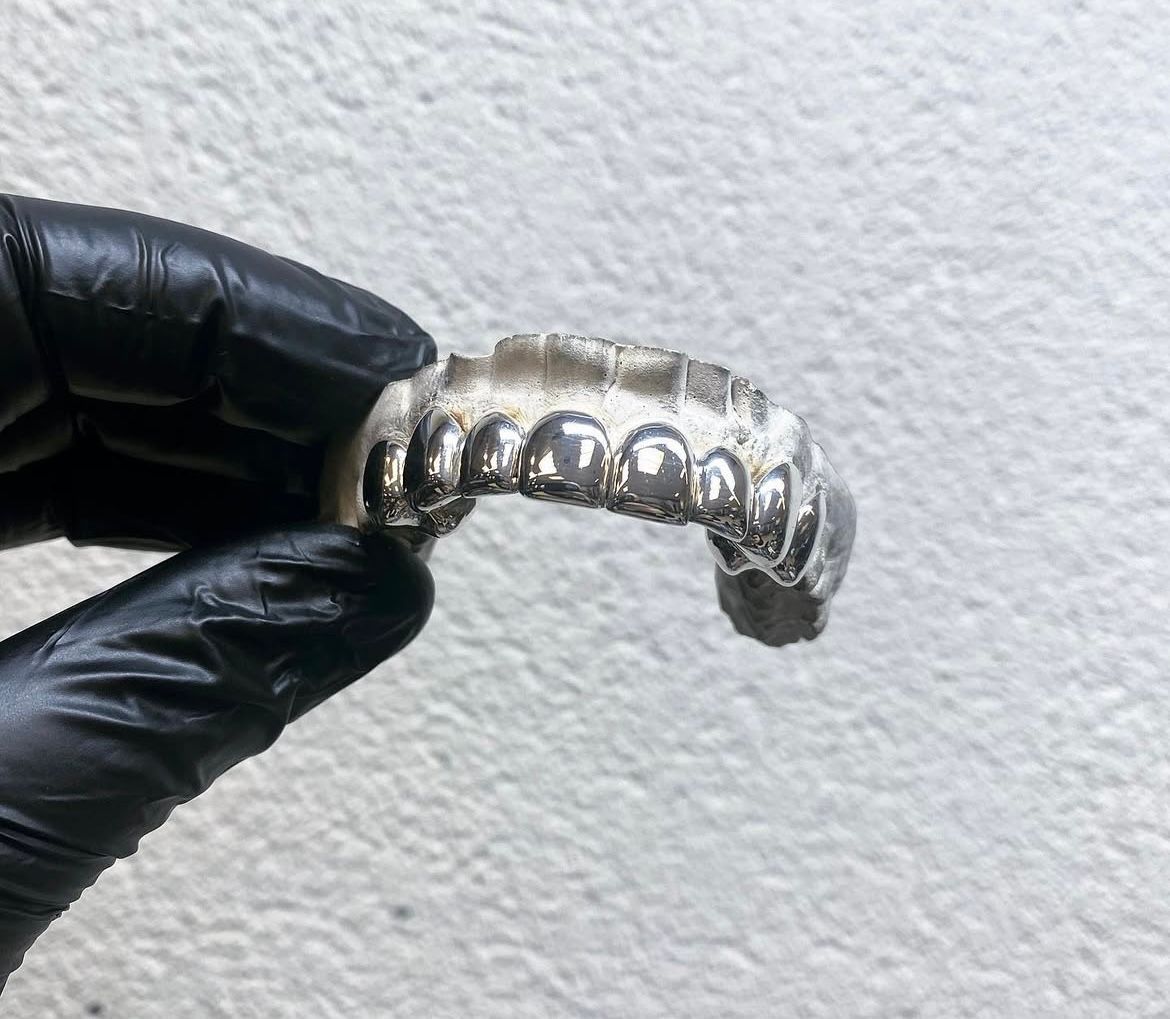 Het is bij ons ook mogelijk om custom grillz op maat te laten maken. Hiervoor wordt er eerst in de winkel een afdruk van je gebit gemaakt, waarna er volgens eigen ontwerp een wasmodel wordt gemaakt. Deze kan in diverse metalen gegoten worden, daarnaast heb je de mogelijkheid om stenen en hars toe te laten voegen. Kijk op @armanyjeweller voor de meest recente ontwerpen. De actuele prijslijst staat onderaan de pagina. Neem gerust contact met ons op om alle mogelijkheden te bespreken.