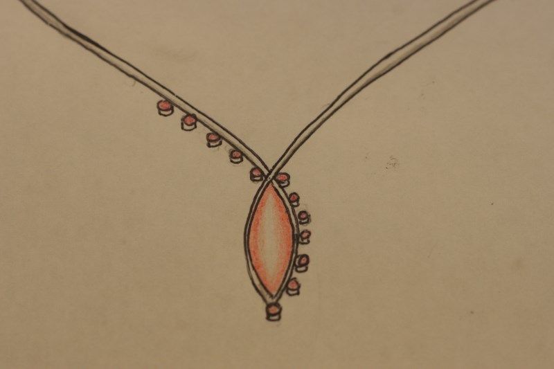 Zilveren collier (Ag 925), eigenontwerp gezet met grote markies geslepen Granaat en ronde kleine Granaten.